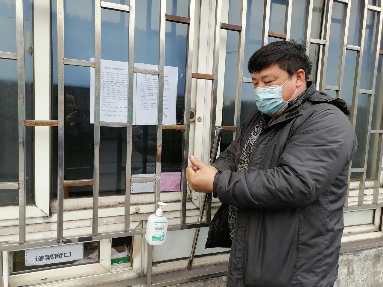 外部運輸司機在中孚鋁業(yè)公司辦理磅單前后進行手部消毒