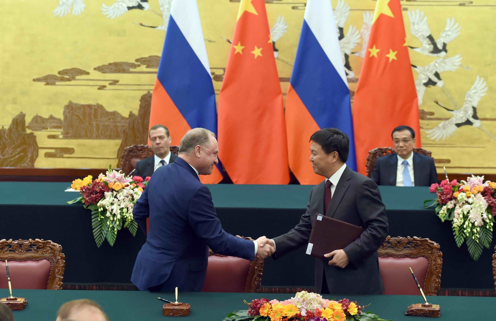 會(huì)晤后,李克強(qiáng)與梅德韋杰夫共同簽署《中俄總理第二十次定期會(huì)晤聯(lián)合公報(bào)》,并見證能源、投資、金融、高科技、海關(guān)、質(zhì)檢、教育、旅游等領(lǐng)域雙邊合作文件的簽署。豫聯(lián)集團(tuán)名譽(yù)董事長(zhǎng)張洪恩、董事長(zhǎng)賀懷欽,俄羅斯工業(yè)投資集團(tuán)Vi Holding公司董事長(zhǎng)V.N.克拉斯諾夫出席了簽字儀式。
