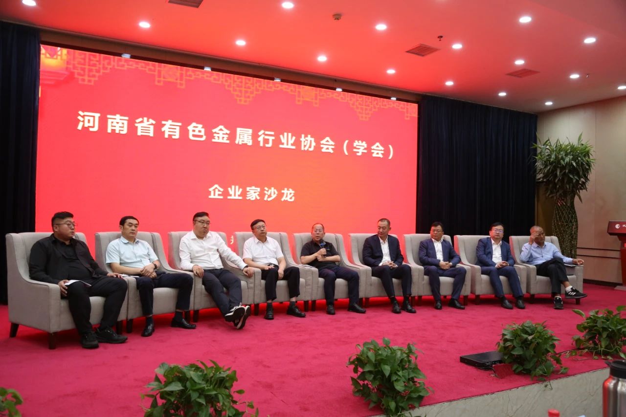會員大會和理事會議程結束后,召開了企業家沙龍。來自省內有色行業領域的9位優秀企業家代表相聚一堂,針對熱點話題和各自發展經驗,作了精彩分享。