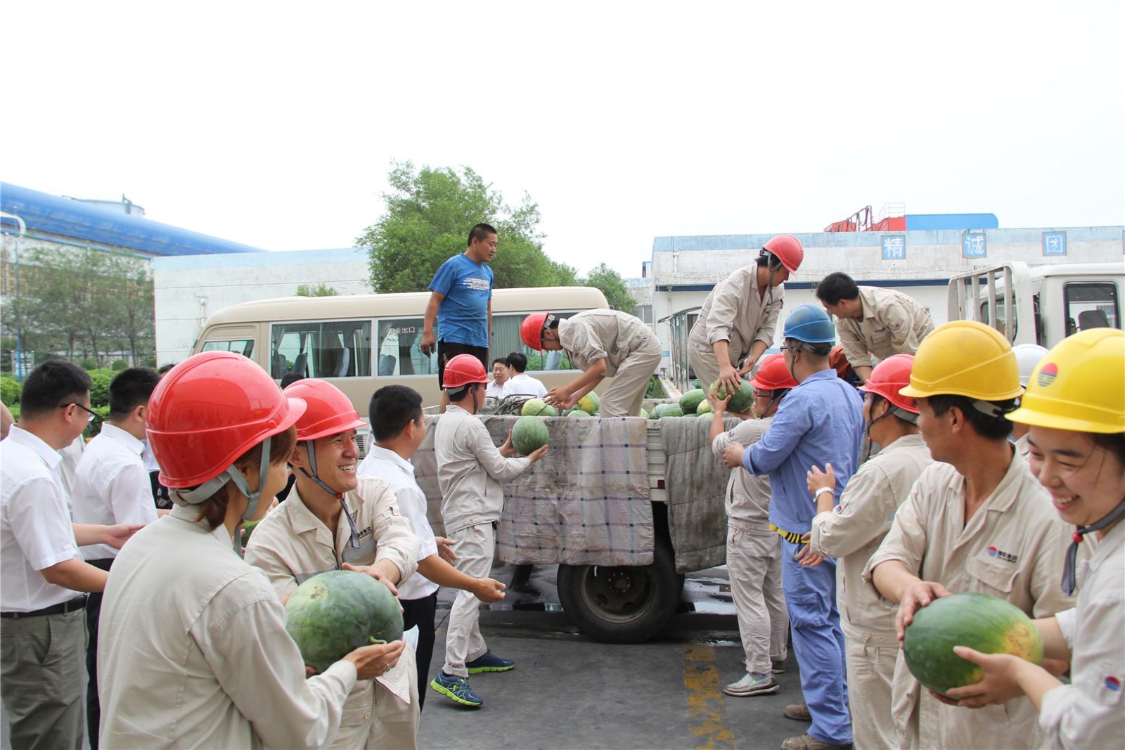 7月25日上午,受集團公司賀懷欽董事長委托,中孚實業總經理張松江帶隊,集團公司有關領導、機關各部門人員組成慰問組,先后到鋁業公司、銀湖鋁合金公司、博奧公司、電力公司、高精鋁公司、炭素公司、熱力公司等11個單位,帶去16000斤西瓜以及夏桑菊、藿香正氣水、風油精、清涼油等防暑降溫用品,看望、慰問奮戰在高溫崗位的一線員工,讓員工在酷暑中感受到舒心的涼意。