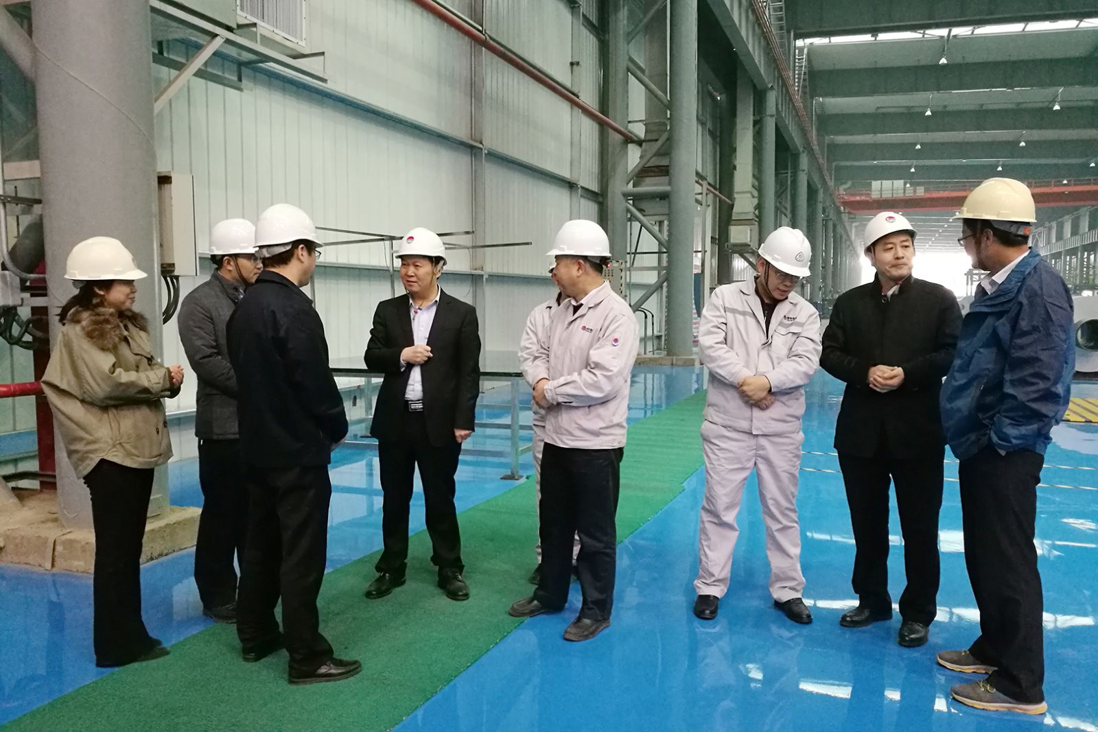 在擴(kuò)建高精鋁精整車間,賀懷欽董事長(zhǎng)重點(diǎn)察看了進(jìn)口拉矯、涂層線調(diào)試情況,對(duì)進(jìn)口拉矯于日前順利穿帶表示祝賀。賀懷欽董事長(zhǎng)指出,擴(kuò)建高精鋁要充分利用外方專家在現(xiàn)場(chǎng)服務(wù)的有利時(shí)機(jī),調(diào)動(dòng)一切積極因素,加快設(shè)備調(diào)試進(jìn)度,盡快實(shí)現(xiàn)目標(biāo)產(chǎn)品合格化、批量化、規(guī)模化生產(chǎn),使高精鋁項(xiàng)目早日實(shí)現(xiàn)全面達(dá)產(chǎn)創(chuàng)效。