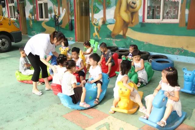 老師們帶領孩子們進行簡單的梳洗打扮后,中大班的孩子們來到操場上按照既定的教學計劃進行著有趣的各項器械活動。