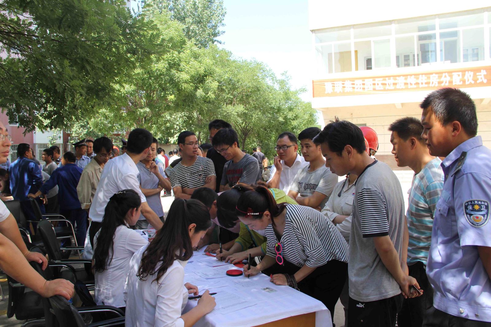 當天上午,在過渡性住房分配儀式上,辦公室有關人員通報了此次過渡性住房調整概況,及時公布了員工舉報及反映問題的調查結果,宣讀了具體選房及協議簽訂辦法。現場工作人員頭頂 35℃的高溫,汗水浸透全身,耐心細致地做好各項審核登記工作。參與分房的員工掩飾不住內心的激動,歡聲笑語此起彼伏。申請繼續居住的員工均對過渡性住房改革表示贊成和擁護。高精鋁公司一位年輕員工興奮地說:“這次分房非常公平,作為外地大學生,我剛剛結婚,就分到了過渡性住房,終于有個窩了,真美。企業真心實意地為我們著想,我們一定要用自己的聰明才智回報企業。”炭素公司一位分到房的員工激動地說:“這次能分到房,實現了我多年的夢想,太出乎我的意料了,工作生活在豫聯大家庭我很幸福。”